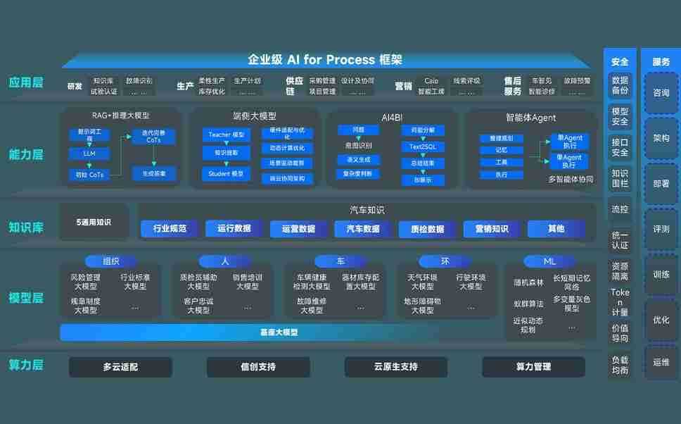 菠菜论坛问学智车解决方案是一套基于AI技术的汽车行业智能化系统,,,覆盖从底层算力到顶层AI应用的全栈方案。。。方案由算力层、、、模型层和应用层组成:算力层,,,,方案支持多种一体机配置,,,,具备云端灵活部署、、、、多云适配以及动态优化计算资源的能力;模型层,,菠菜论坛问学平台版提供了企业级AI应用一站式构建与管理平台,,,支持基于后训练强化技术的汽车企业专属模型的训练、、、评测和运营;应用层,,,菠菜论坛问学DeepSeek版提供包括超级员工、、智能招采、、、、智能营销、、智能客服、、、、AI for BI等一系列解决方案,,可助力汽车行业实现数字化转型,,,,让管理更智能、、、、响应更敏捷。。。